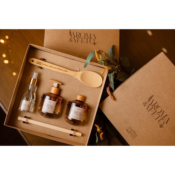 Kit Especial Aroma & Afeto Difusor + Home Spray + Sabonete + Colher de Pau